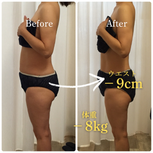 家族に体型を指摘され、一念発起。この後もご継続され、1年後にはマイナス16kgの大変身!お洋服2サイズダウン!